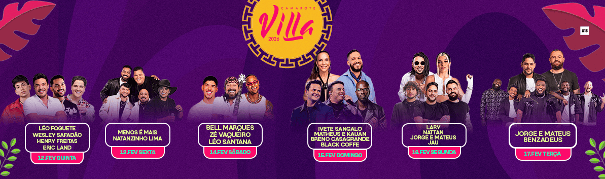 Horário do Camarote Villa 2026:  De quinta a terça das 19 as 05 da manhã