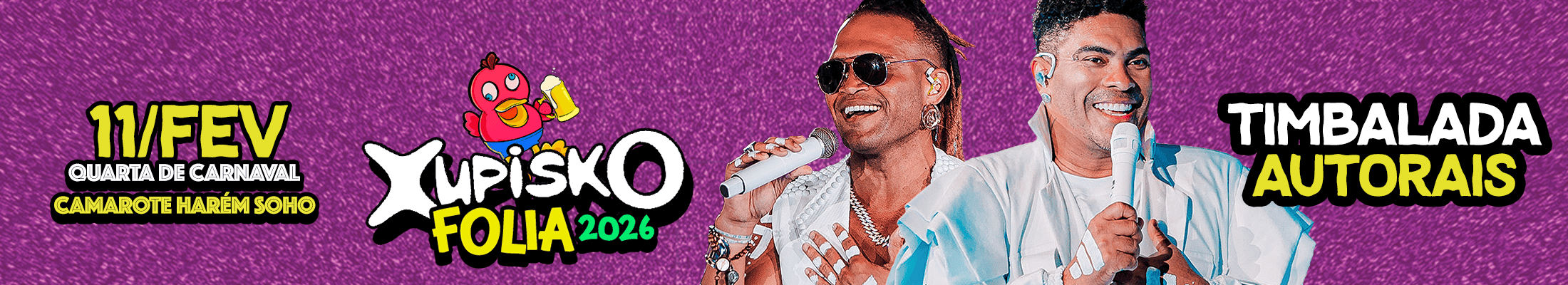 A festa continua no Camarote Harém, onde o Xupisko vira baile indoor com shows de Timbalada e Autorais, garantindo uma noite intensa, animada e inesquecível.